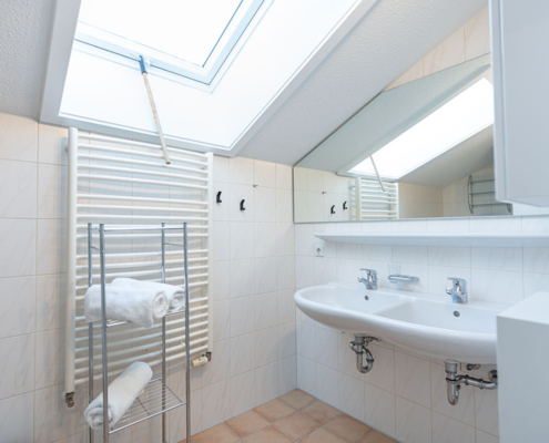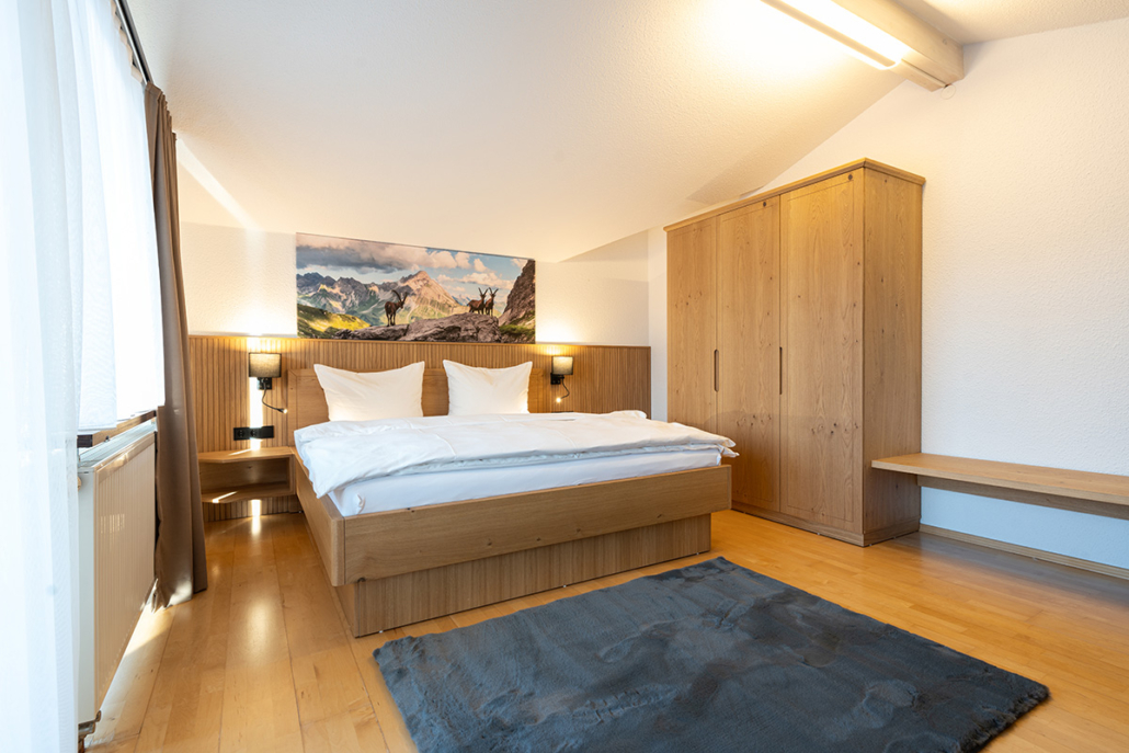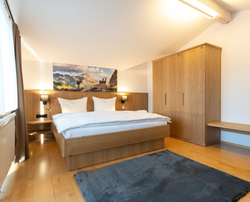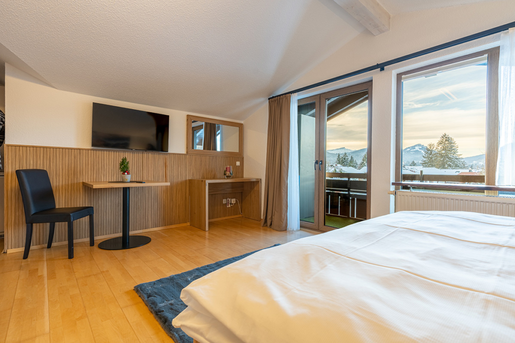 Doppelzimmer mit einem Raum für 1 bis 2 Personen. Badezimmer mit Dusche/WC und Föhn. Flachbild-TV und Radio im Zimmer und Nord-balkon.